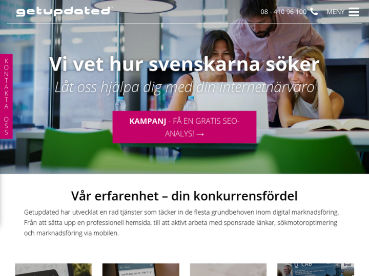 Getupdated has about 30 employees and the offices in Stockholm and Boras. We are a good support for the people who are planning to make themselves web visible with best implementation of their services.