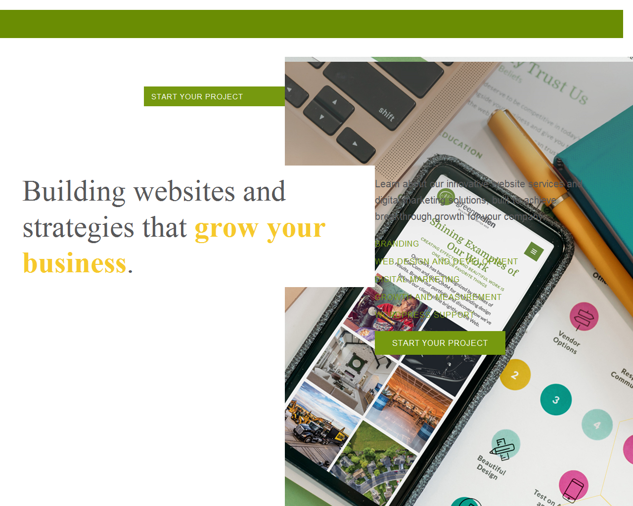 We provide website, branding, design and messaging solutions to make your company’s digital presence meet today’s expectations. By uncovering the unique personality of each brand we work with, we’re able to create a digital environment that personifies those characteristics and refines the user experience.