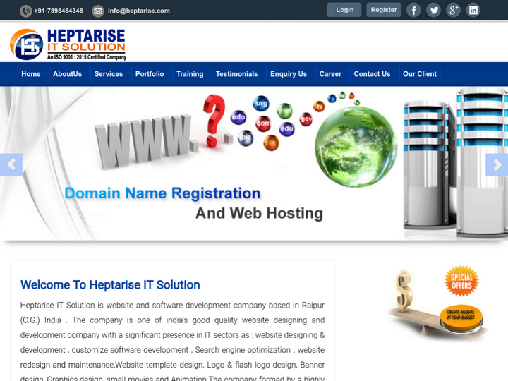 Heptarise IT Solution is website and software development company based in Raipur (C.G.) India. The company is one of replica watches India's good quality website designing and development company with significant presence in IT sectors as website designing & development, customize software development, Search engine optimization, website redesign and maintenance, Website template design , Logo & flash logo design, Banner design, Graphics design, small movies and Animation. All These services providing you by using modern technology at minimum cost and affordable prices.