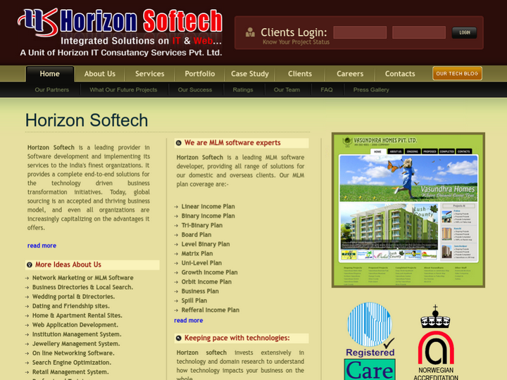 Horizon Softech (A Unit of Horizon IT Consultancy Services Pvt. Ltd.) is a leading provider in Software development and implementing its services to the India's finest organizations. It provides a complete end-to-end solutions for the technology driven business transformation initiatives. Today, global sourcing is an accepted and thriving business model, and organizations are increasingly capitalizing on the advantages it offers.