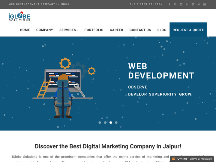 iGlobe Solutions is one of the fastest-growing IT services provider companies which provide Web designing, Web Development, Web Applications, E-Commerce Shopping sites, Portals development, Software solutions, Branding, and Digital Marketing Solutions, and Android mobile apps. Our Mission is to deliver innovative, cost-effective, and timely solutions that drive the growth of small and medium-sized businesses worldwide. Our Vision is to treasure our client value and satisfaction.