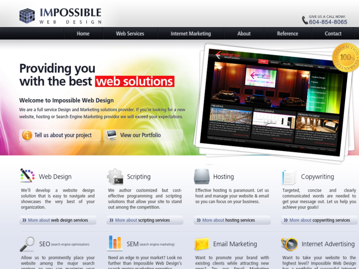 Impossible Web Design is a web design and development company which was founded to deliver real world professional solutions to small and medium businesses. The company is uniquely situated to provide the Vancouver Lower Mainland with a full range of website development solutions with the best combination of effective graphics and design, technical scripting and programming and friendly convenient customer services.