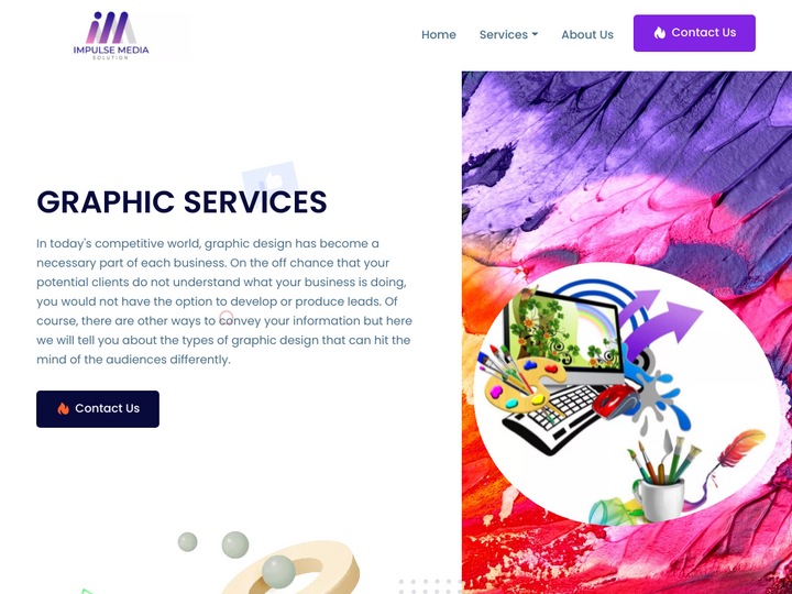 The Graphic Design Agency Impulse Media Solution specializes in Web page design, print design, merchandise design, app design, logo, and brand identity.