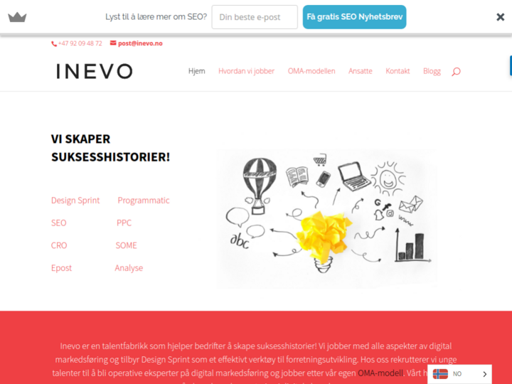 Inevo is a talent factory that helps businesses create success stories! We work with all aspects of digital marketing and offer Design Sprint as an effective tool for business development. With us, we recruit young talents to become operational experts in digital marketing and work for our own OMA model. Our main goal is to increase sales and conversion in digital channels.