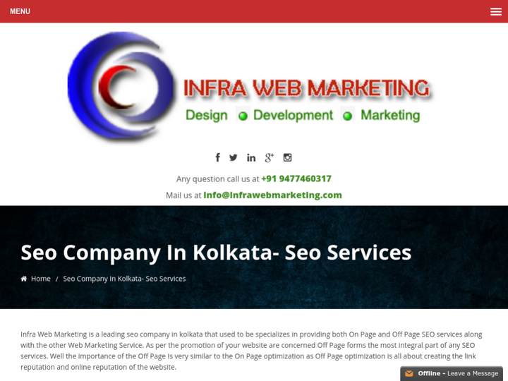 The Infra Web Marketing is one of the premier seo company in kolkata, that provides array of digital marketing services like Content Writing, SEO, Local SEO, Video Marketing, Web Design and Social Media Marketing. Digital Marketing is rated as the latest trend in marketing and it has changed the way we used to market or promote our brands and services.