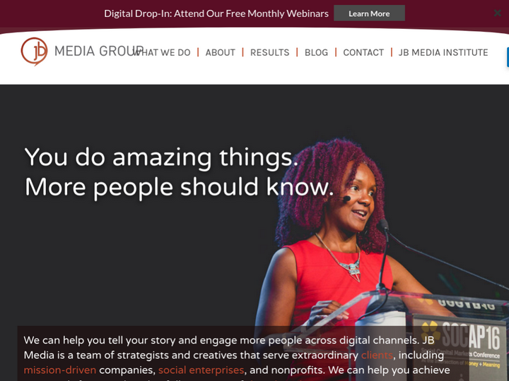 JB Media Group is a digital marketing agency providing strategy, SEO, social media, content writing, advertising, and PR services. We help social enterprises, mission-driven companies, and nonprofits build a better world.