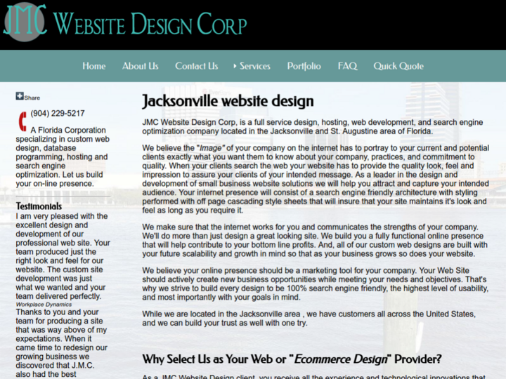 In 2002, JMC Website Design emerged on the scene as a leader in the Florida web design market. We began by building marketing solutions for New Home Builders in the Florida market. We combined the efforts of our creative team of experts in the fields of marketing, print design, photography, flash development, seo marketing, and web design to expand our services to other clients needing a web presence.