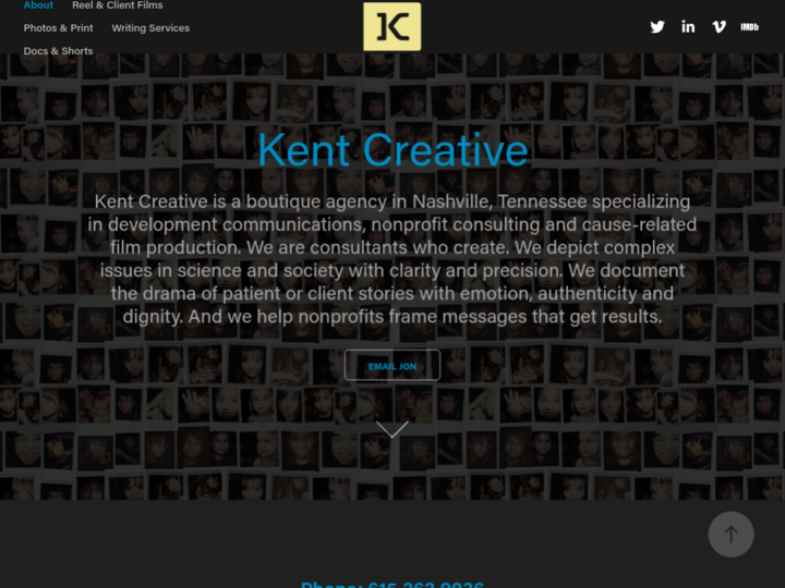 Kent Creative is a boutique agency in Nashville, Tennessee specializing in development communications, nonprofit consulting and cause-related film production. We are consultants who create. We depict complex issues in science and society with clarity and precision. We document the drama of patient or client stories with emotion, authenticity and dignity. And we help nonprofits frame messages that get results.