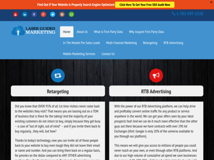 Laser Guided Marketing (LGM) is a full service marketing agency that helps businesses thrive by harnessing the power of BIG DATA and cutting edge technology to drive more new customers and repeat business to our Client’s offers to increase their bottom line profits in record time.