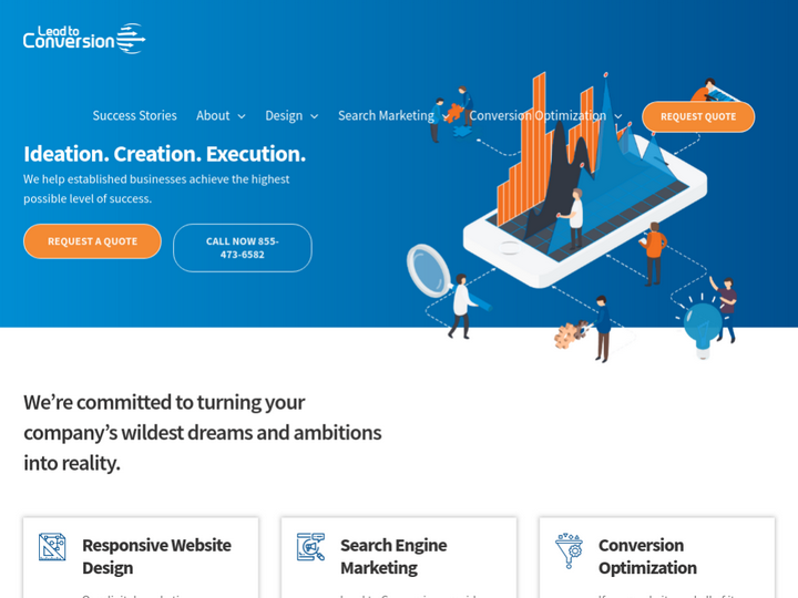 At Lead to Conversion, we specialize in helping companies of all sizes get more leads and sales through effective web design and online marketing. Lead to Conversion specializes in Brand Development, Responsive Website Design, Search Engine Optimization, PPC Management, Social Media Marketing, Email Marketing, Video, & Conversion Rate Optimization. We take pride in providing our customers with the highest level of personalized attention, care and commitment, with superior results and tailor-made plans designed exclusively for you, your business and your brand. Whether you’re looking to improve your rankings in the search engines or need a web site that responds to mobile devices and converts visitors … whether you’re launching a new small business or looking to grow and overcome the competition at the Enterprise level, Lead to Conversion is your source for customized and innovative online marketing strategy and execution.