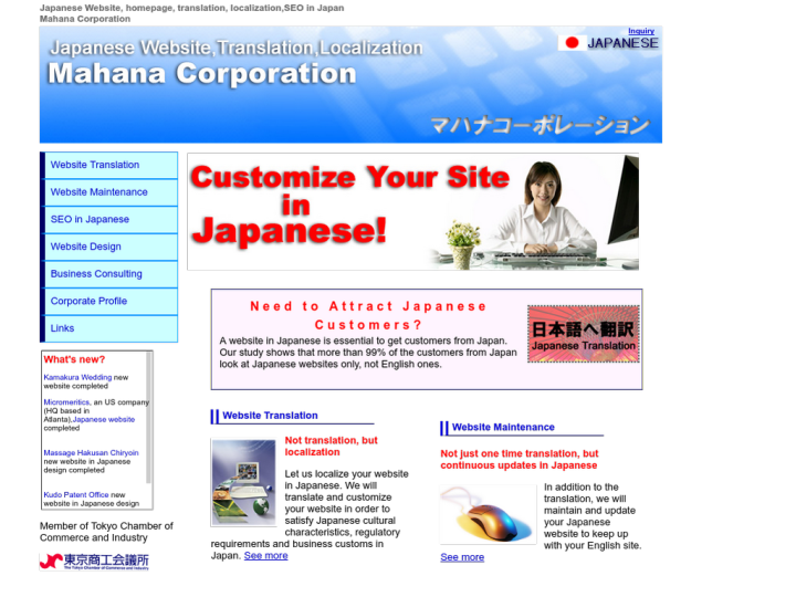Mahana Corporation Co., Ltd. is a business enhancement company which was established on November 25, 2005 to make the client’s enterprise successful in the industry. A member of Tokyo Chamber of Commerce and Japan Association of New Economy (JANE).
