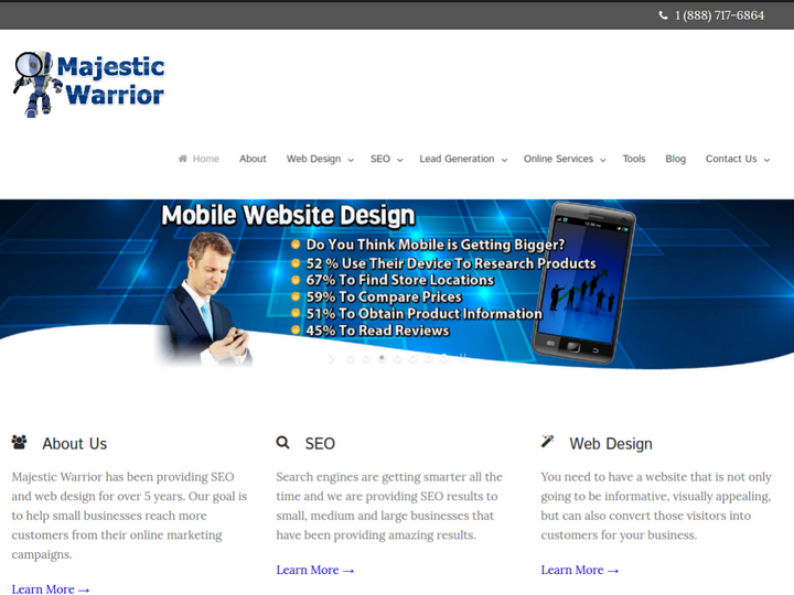 Majestic Warrior is an online marketing company that has provided SEO services for small to medium sized businesses for the past 6 years. We start by learning about your business and determining what your needs are and then we start keyword research and on-page optimization. We want your website to be structurally sound to give it the best chance to obtain higher rankings and traffic from the search engines. We then build a branded content syndication network that is used for your content marketing strategy. It is important to have a solid content marketing strategy in place to provide fresh and new engaging content for your visitors on a regular basis.