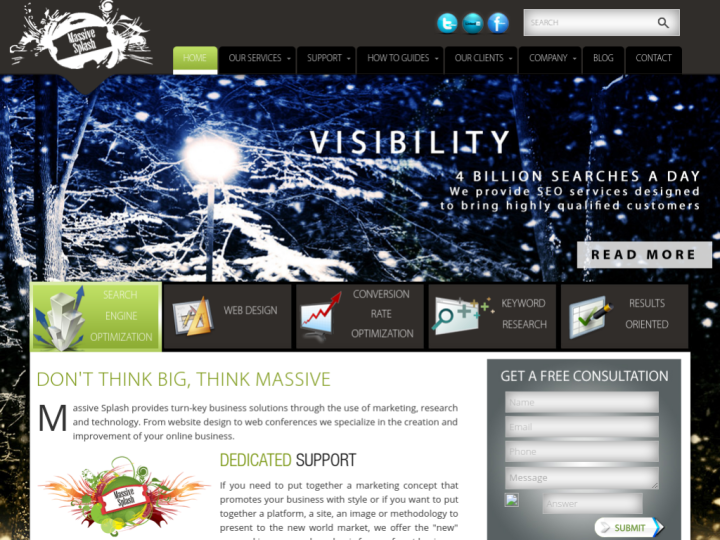 Massive Splash provides business solutions through research, marketing and technology. The company has diversified expertise in providing services such as online marketing, web development and strategic marketing. The team of Massive splash creates websites, promote them and also provides strategic marketing advice. It serves a reason for what makes it to stand out of crowd.