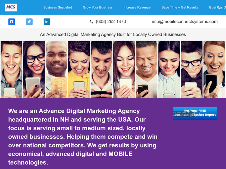 We are an Advance Digital Marketing Agency headquartered in NH and serving the USA. Our focus is serving small to medium sized, locally owned businesses. Helping them compete and win over national competitors. We get results by using economical, advanced digital and MOBILE technologies.