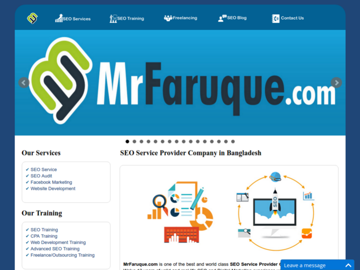 www.mrfaruque.com is the Best SEO Service Provider Company in Bangladesh and all over the world like USA, UK, Canada, Australia, India any many other countries. We always believe in ethical and organic SEO strategy and ensure the targeted audience for your business website. That's why once you stop our SEO service then your website traffic and sales never down going for ever!