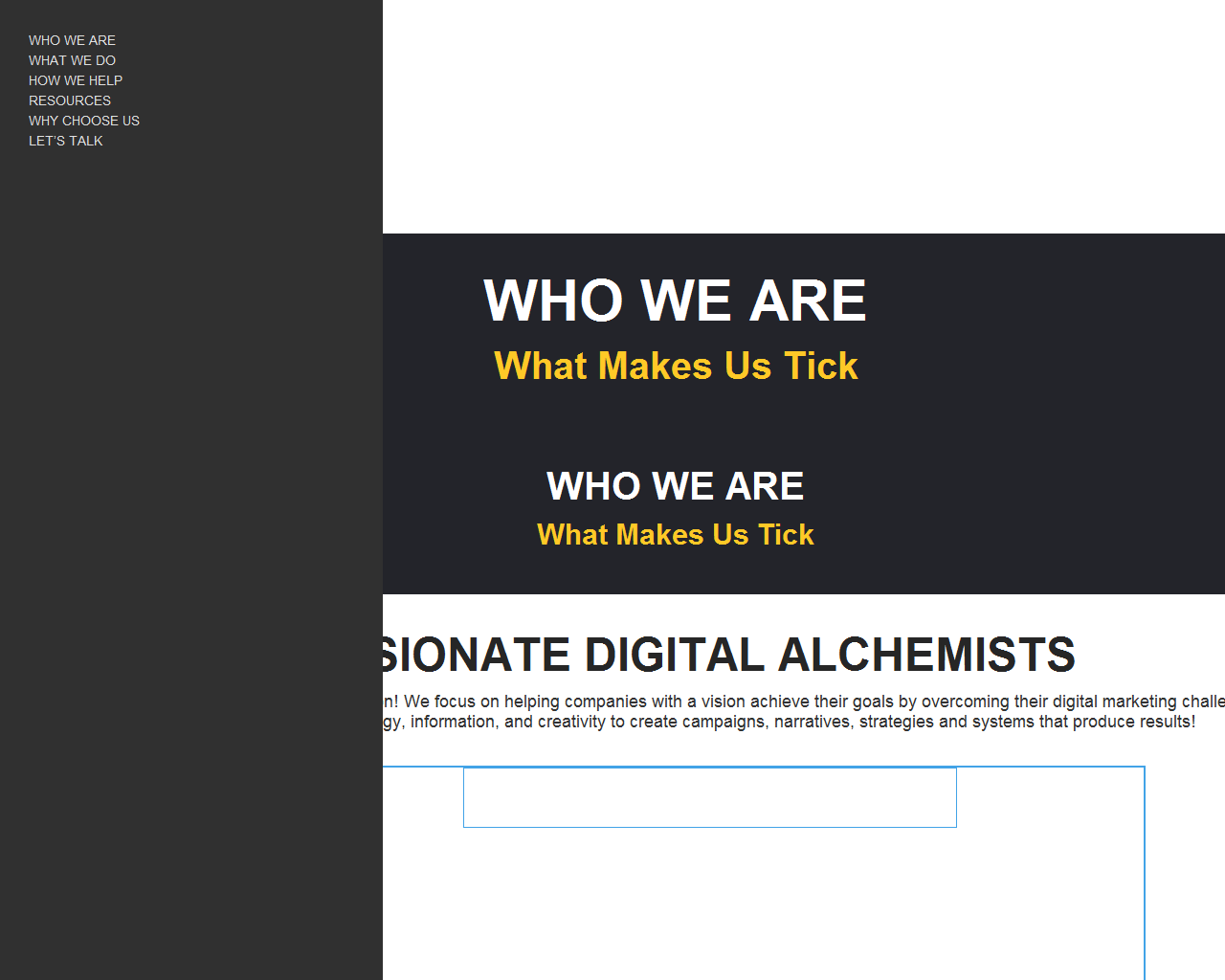 A Digital Marketing Agency you can count on! We focus on helping companies with a vision achieve their goals by overcoming their digital marketing challenges. We do this by leveraging technology, information, and creativity to create campaigns, narratives, strategies and systems that produce results!