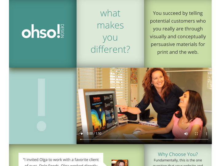 Through custom-built websites, eye-catching print pieces, and expert e-commerce marketing, ohso! design is all about measurable results. We're a small powerhouse of four experienced creative and development professionals, Olga, Jamie, Jim and Sarah. We also work with a wealth of incredible partners for video, SEO, social, online advertising and more.