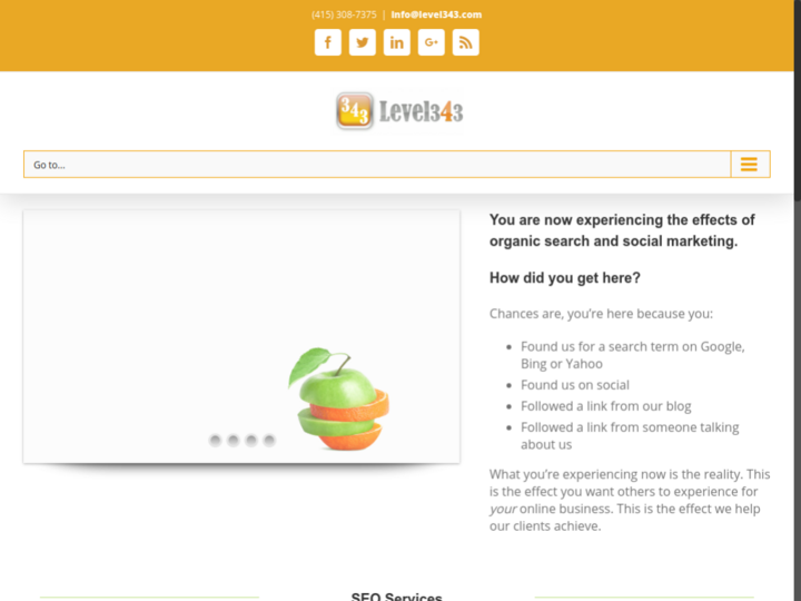 Level343 is an international marketing and SEO company based in San Francisco, California. Since 1994, we have been providing consultation for global clients including print advertising, SEO copywriting services and website development services as B Studio. At the end of 2005, after a variety of business ventures and experimenting with marketing venues, Gabriella Sannino opened the doors of Level343. We’ve grown a lot since then, adding a highly competent staff of copywriters, optimizers, and web developers.