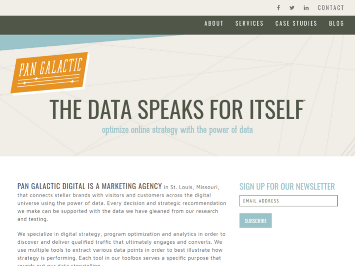 Pan Galactic uses the power of data to develop digital strategies that support a brand’s goals. It’s simple: Data delights and excites us. We turn rows of numbers into actionable insights. There’s nothing like the thrill of diving into the data to see what jewels are shining through. We are like Michelangelo and his slab of marble, ready to carve out a masterpiece.