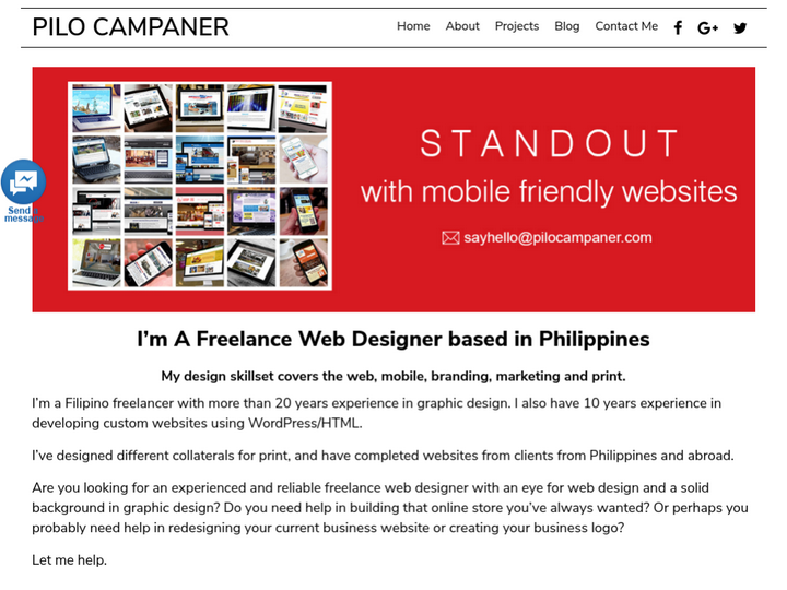 My name is Pilo Campaner. I am a freelance web and graphics designer based in the Philippines. I’ve been working freelance since 2013 and have delivered a number of successful projects since then.