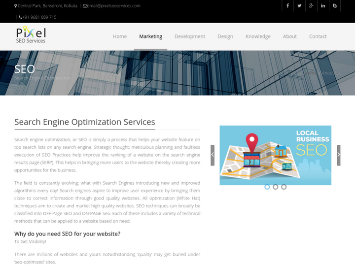 We at Pixel SEO Services, offer SEO Services, Digital Marketing services, Online brand promotion, website development, website design services and other IT services to assist clients all over the world. From conceptualization to designing to development, we offer solution for all types of business concerns. With an experienced team of highly competent and talented professionals, we follow a global delivery model to accelerate the whole work processes.