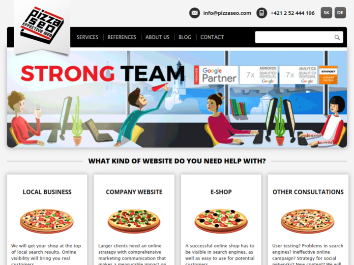 Pizza SEO is an experienced Online Marketing Agency. We are focused on Comprehensive Visibility and Performance Marketing for ambitious companies: we are doing Search Engine Optimization (SEO), Usability, Communication in Social Networks and Online Advertising. For clients, we create new websites, user-friendly and optimized for search engines from the base.