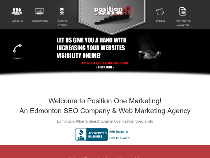 Position One Marketing is a result based search engine optimization company based in Edmonton, Alberta. The company not only concentrates over increasing revenue but also expand your brand awareness among many potential customers. It was founded by Ian Herculson in 2009. The services provided by the company on page optimization, search engine optimization, competitor analysis, social media management and many other services.