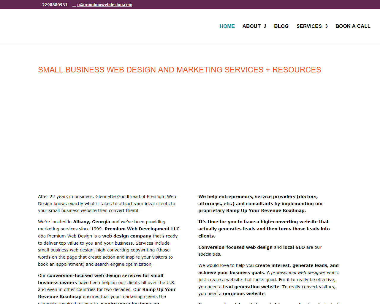 Hello there! I’m Glennette Goodbread, professional web designer and owner of Premium Web Development LLC. I began to take an interest in web design toward the end of 1998, thus completing my first project – a personal website. As a Systems Analyst, I already knew my way around the computer, but this new discovery into web design opened up entirely new doors. I started my business in 1999 and created my first website in FrontPage.