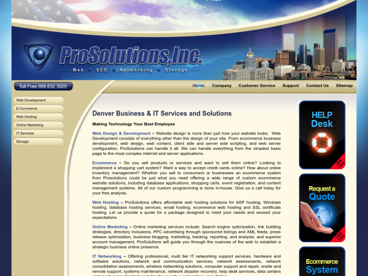ProSolutions is a Denver based, ISO 9001:2008 certified IT organization which has been in the industry since 1985. The company is focused to provide you the guaranteed quality services that meet your expectations and objectives as well as overcome challenges that span all business areas of your organization.