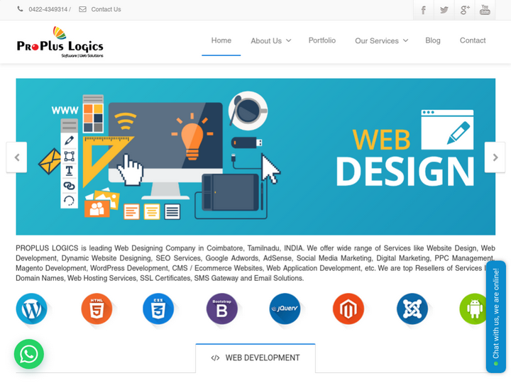 ProPlus Logics is a Leading Web Designing Company located in the Heart of Coimbatore City. We offer a wide range of services which includes Professional Web Design, Web Application Development, Search Engine Optimization, SEO Marketing and Branding to our valuable customers based on their unique needs.