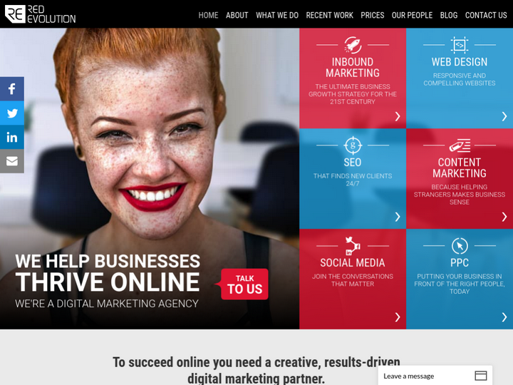 We’re a 9 strong multi-disciplined agency specializing in web development, inbound marketing, and web application development. This means we design and build websites, we help our clients use their websites to generate leads or inquiries and we write web-based software applications that help them work smarter or better serve their customers.