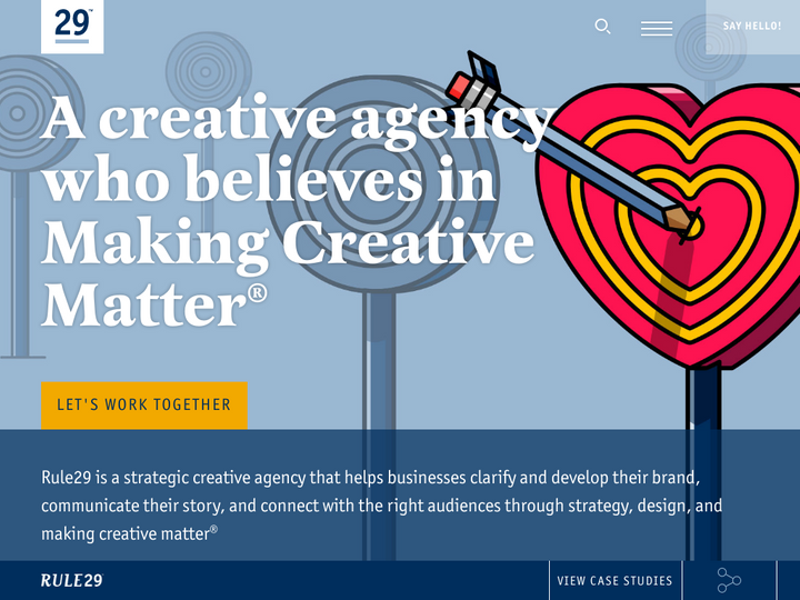 Rule29 is a Chicagoland strategic creative agency that helps businesses clarify and develop their brand, communicate their story, and connect with the right audiences through strategy, design, and making creative matter®