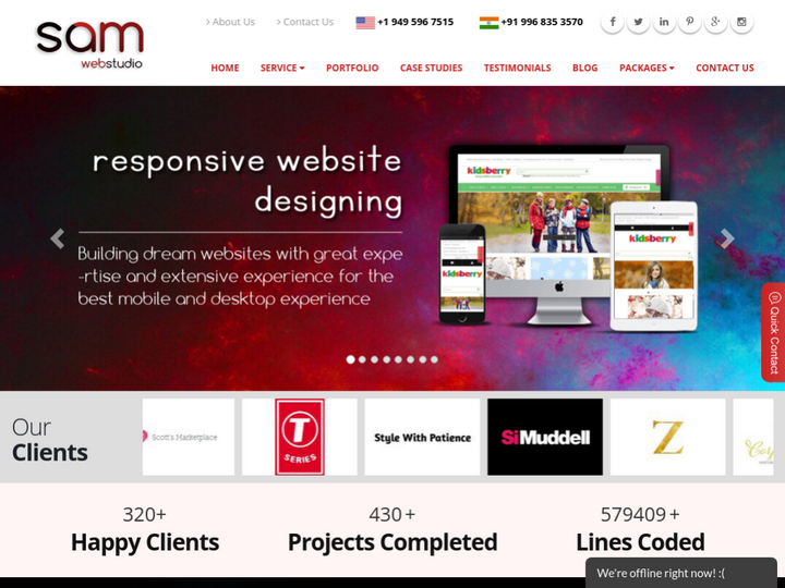 Sam Web Studio is the top leading web designing company in Delhi, India. It provides the best price on web hosting, website development, mobile application development, Multimedia Solutions and many more. along this, we provide Digital marketing services like SEO, SMM, PPC, online marketing, Link building Services. If you need some help, contact us. Call +91 9968-353-570 or contact@samwebstudio.com