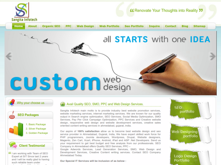 Sangita Infotech is a preferred IT outsourcing company, SEO company, website promotion company that provides result oriented SEO, Website Promotion, Website Design and Software Development Services to US, UK, Australia and India based companies. We want you to experience our amazingly easy, high-quality customized solution for your Web, SEO, Development needs. We have development center at Bangalore and Head office located in Ahmedabad, Gujarat, India.