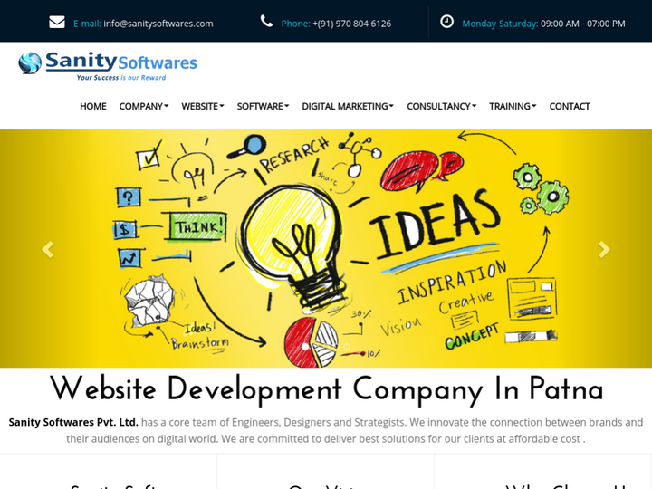 Sanity softwares private limited is India based software company located in Patna. This company is registered by Ministry of Corporate Affairs Govt. of India under Company Act 1956. We clearly understand that Website is the face of your company online what you offer offline in your business.