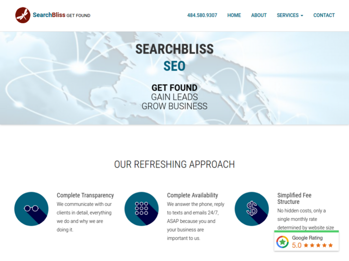 SearchBliss was started by John Kline in Radnor, PA (a suburb of Philadelphia in Delaware County) as local business search engine to provide traffic for small businesses in 1998. Over the next 3 years, we began to expand into search engine optimization and online marketing for the local search clients.
