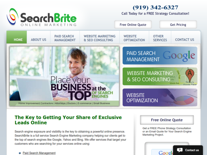 Search engine exposure and visibility is the key to obtaining a powerful online presence. SearchBrite is a full service Search Engine Marketing company helping our clients get to the top of search engines like Google, Yahoo and Bing.
