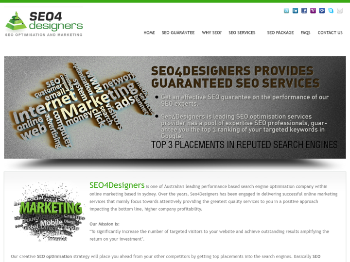 SEO 4 designers is a leading search engine optimization service provider that has pool of professional and specialists to guarantee the top 3 placements to your website in search engine result pages. The company has years of experience in delivering error free and affordable service. With its smart optimization services, SOE4 designers assist you to lift your sales and hence generates revenue. The company has specialist team that adopts latest tactics to make you grow online.