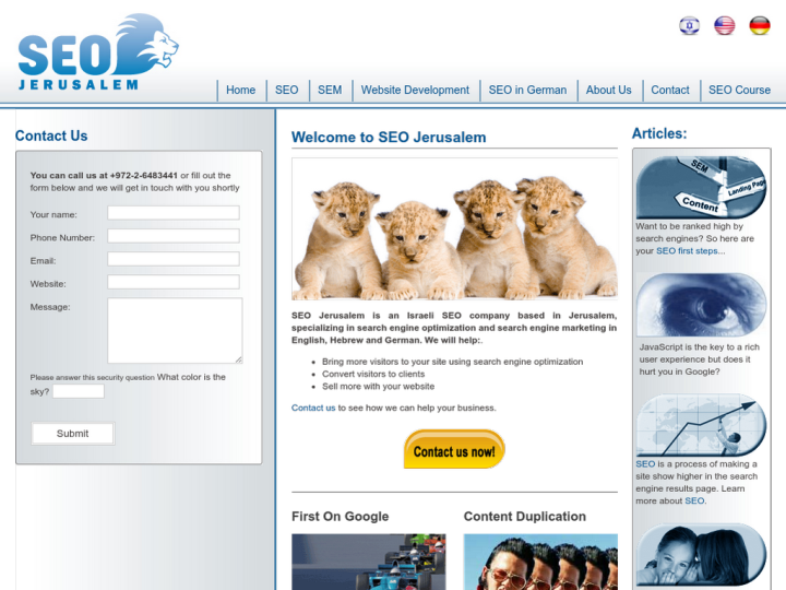 SEO Jerusalem is a premium search engine optimization company which not only leads Israel SEO market, but also worldwide services. The company is fully expert in developing websites with unique “SEO Ready Pack”.