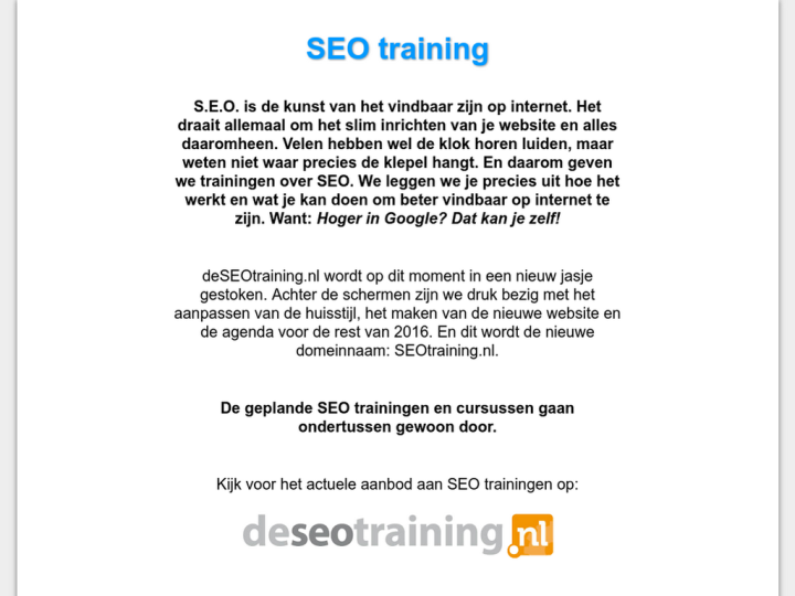 SEO Training Nederland verzorgt SEO trainingen en cursussen op verschillende locaties in Nederland: o.a. in Amsterdam, Den Haag, Westland en Utrecht.