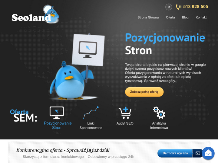 Chciałbyś aby Twoją stroną zajęła się profesjonalna agencja SEO? Liczysz na duży sukces swojej firmy w internecie? Jesteśmy profesjonalistami tworzącymi agencję Seoland, która przeprowadzi Ciebie przez proces zdobywania wysokich pozycji w wyszukiwarce google. Dlaczego powinieneś wybrać właśnie nas? Dlatego, że nie działamy na masową skalę, nasza oferta opiera się o indywidualne podejście do każdego klienta. Oferujemy pozycjonowanie oparte o konkretne działania, które przedstawiamy naszym klientom w co miesięcznych raportach. Zastanawiasz się czy pozycjonowanie stron z opłatą abonamentową to naciąganie klienta? W naszej agencji działamy o taki model rozliczeń, ale nasi klienci wiedzą za co płacą bo im to pokazujemy! Skupiamy się przede wszystkim na pozycjonowaniu - oferujemy niższe ceny dla firm lokalnych, działających w obrębie mniejszych lub większych miejscowości. Wiemy jak pozycjonować stronę by nie narazić jej na jakiekolwiek kary ze strony algorytmu wyszukiwarki. W naszej ofercie jest dostępny również audyt seo, który jest niezwykle ważnym elementem SEO. Jeśli chcesz z nami współpracować lub masz jakieś pytania to napisz do nas. Postaramy się odpowiedzieć w ciągu 24 godzin!
