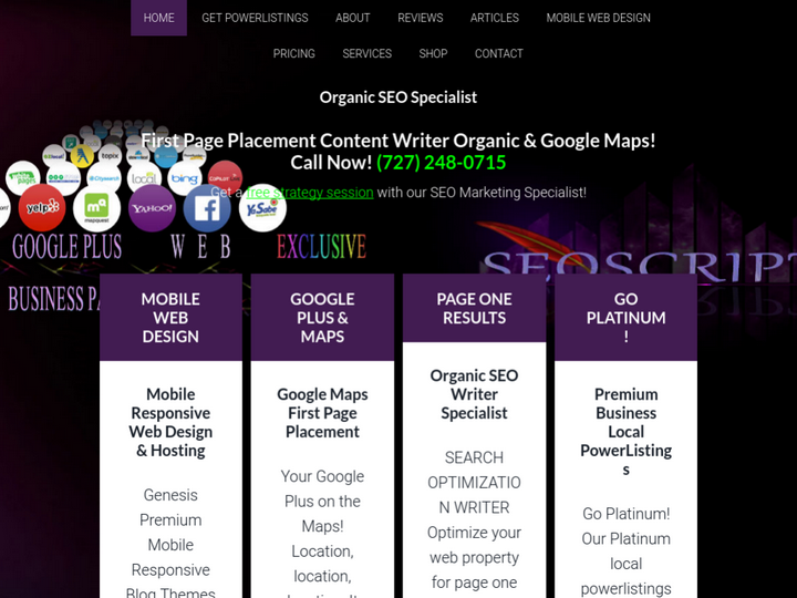 Organic SEO Specialist. From hosting to building your website to first page placement on the search results. Get your Google Plus Business page on page one Google maps SERPs.