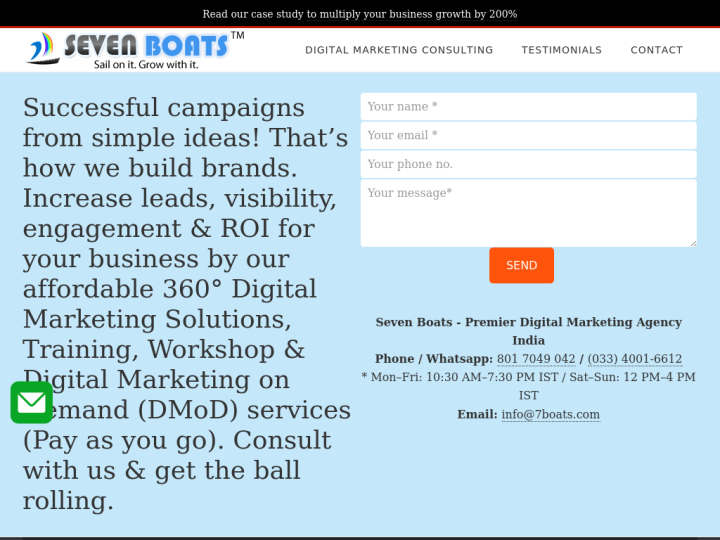 Seven Boats is a Kolkata based company which has served 500+ digital marketing campaigns across the globe. We cause higher revenue, profit and leads to the clients business by our customized digital marketing services.