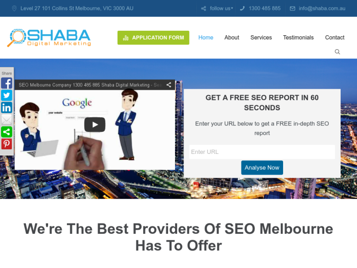 Shaba Digital marketing is a full service internet marketing agency based in Melbourne. The company is renowned to keep mutual trust, integrity and transparency with its customers. It performs all forms of digital marketing and specializes in SEO. The team associated with the company work to achieve defined targets at defined time. Moreover, it aims at maintaining long term relationship with its customers. The unique and result oriented services of Shaba Digital marketing has made the company reliable for its customers. The services provided by the company include SMM, SEO, Google web analytics, pay per click and email marketing.
