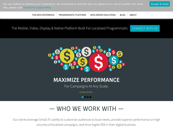 Simpli.fi is the leader in localized programmatic advertising. We work with the largest buyers of localized advertising, including multilocation brands, agencies, local media groups, networks, and trading desks. These companies utilize Simpli.fi to localize ad targeting and content, to deliver performance on high volumes of localized campaigns, and to provide deep insights on their dynamic audiences.