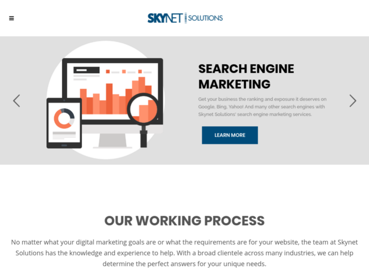 Founded as a small time hosting company in 2003, Skynet Solutions has transformed into a well-known Custom Software Development and Multi-Media Marketing firm. Though our processes are regularly changing and our technology is constantly evolving, we have learned that there is one constant. If you provide the best product possible and provide solid customer service only the sky is the limit.