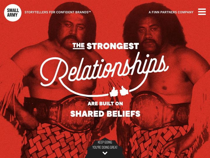 Brands are a lot like people. Deep down, they all just want to be liked. At Small Army, we help brands do just that. It starts with finding their heart (the moral of their story) and then authentically sharing it with their audiences, wherever they may be open to hearing it.