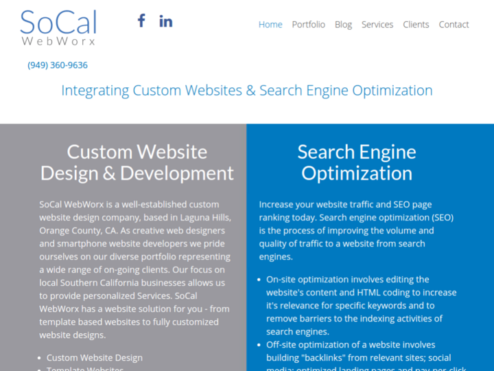 SoCal WebWorx is a well-established custom website design company, based in Laguna Hills, Orange County, CA. As creative web designers and smartphone website developers we pride ourselves on our diverse portfolio representing a wide range of on-going clients.