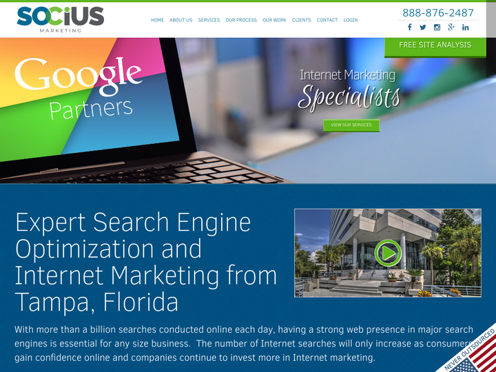 Socius Marketing gets its name from a Latin word meaning partner. The company was founded in 2006 and is based in Tampa, Florida. Socius believes that search engine optimization is essential to the success of any business and seeks to help companies navigate through what has become an increasingly complex industry.