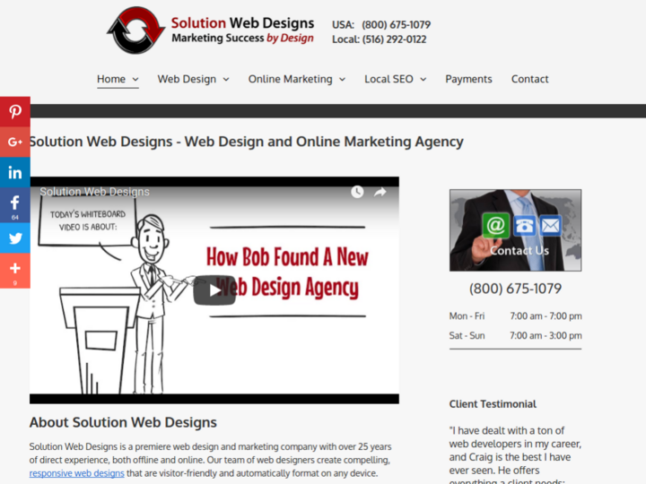 Solution Web Designs is a premiere web design and marketing company with over 25 years of direct experience, both offline and online. Our team of web designers create compelling, responsive web designs that are visitor-friendly and automatically format on any device.